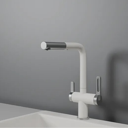 Фото товара: Paulmark GRAVITY, смеситель, белый, белый шланг