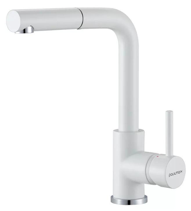 Paulmark GRAVITY, смеситель, белый, белый шланг