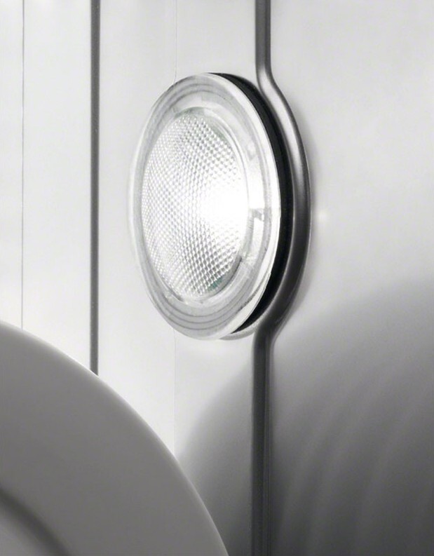 i Индикация окончания программного цикла для тихих моделей. Пока посудомойка работает, цветной индикатор проецируется на полу возле дверцы.