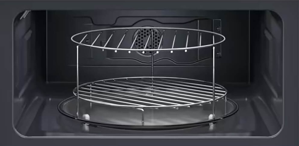 i Поворотный стол — это крутящееся блюдо в центре. Его отсутствие позволяет поместить в камеру посуду большого размера или неправильной формы.