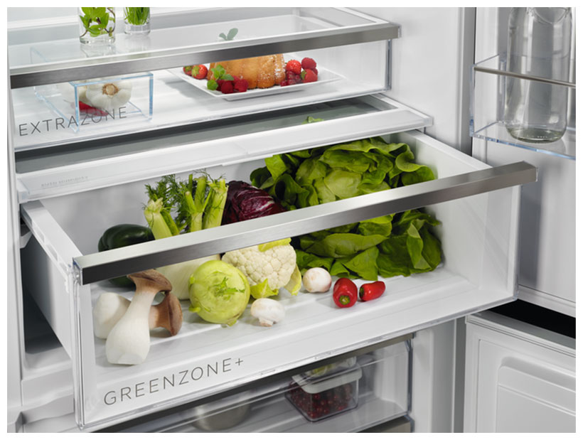 i В зоне свежести температура держится на уровне 0°С, так продукты дольше остаются свежими. Подходит для свежего мяса, рыбы, фруктов, овощей.
