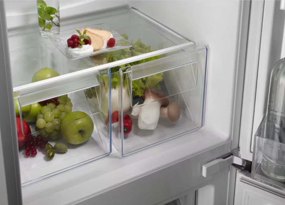 i В зоне свежести температура держится на уровне 0°С, так продукты дольше остаются свежими. Подходит для свежего мяса, рыбы, фруктов, овощей.