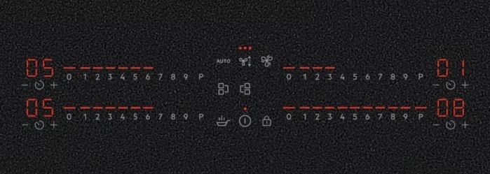 i Расположение панели управления варочной поверхностью относительно конфорок. Если панель расположена сбоку, она будет справа.