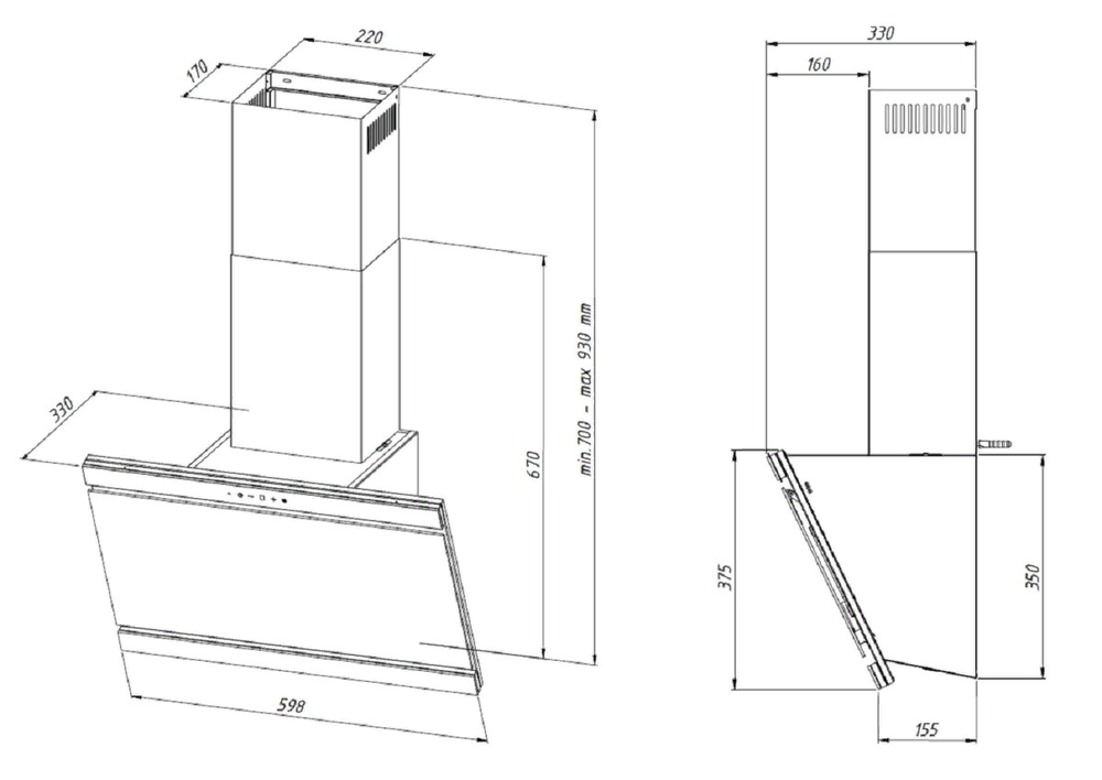 AKPO WK-9 Kastos premium 60 см. черный вытяжка наклонная
