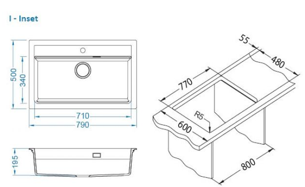i Расстояние от дна до верхней кромки чаши мойки. Оптимальная глубина — 15-18 см. Чем глубже мойка, тем меньше брызг попадет наружу.