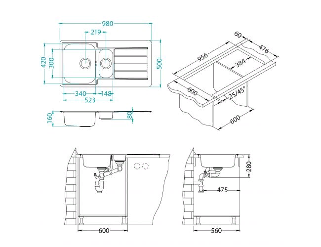 i Наличие и расположение крыла кухонной мойки — слева, справа или с обеих сторон. Крыло оборачиваемой мойки можно расположить с любой стороны.