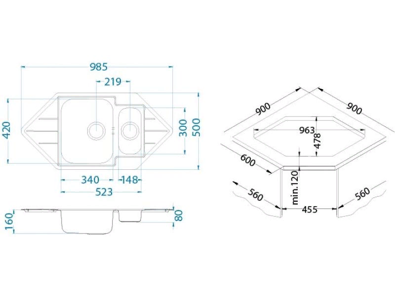 i Наличие и расположение крыла кухонной мойки — слева, справа или с обеих сторон. Крыло оборачиваемой мойки можно расположить с любой стороны.