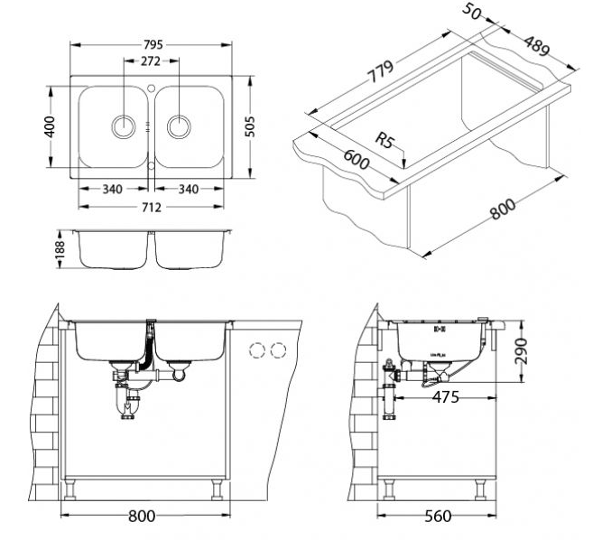 ALVEUS LINE MAXIM 90-SAT, мойка, нержавеющая сталь (с сифоном 1127257)