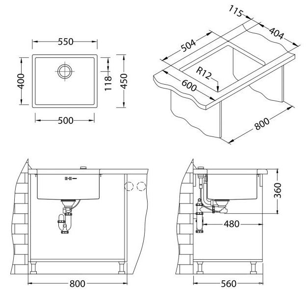 i Расстояние от дна до верхней кромки чаши мойки. Оптимальная глубина — 15-18 см. Чем глубже мойка, тем меньше брызг попадет наружу.
