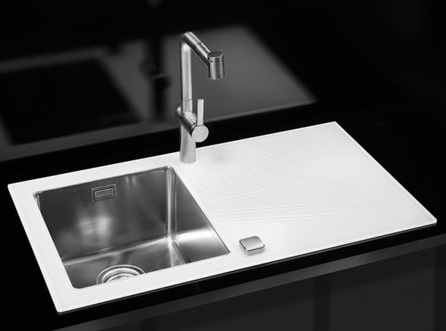 ALVEUS KARAT 10, мойка, нержавеющая сталь/стекло, белый (в компл.с сифоном 1127251)