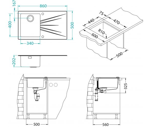 i Наличие и расположение крыла кухонной мойки — слева, справа или с обеих сторон. Крыло оборачиваемой мойки можно расположить с любой стороны.