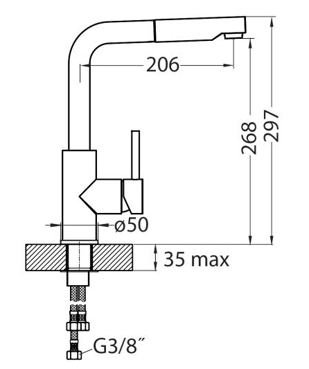 i Встроенная в кран насадка на длинном гибком шланге с металлической оплеткой. Насадки с кнопкой могут переключать обычный излив воды на душ.