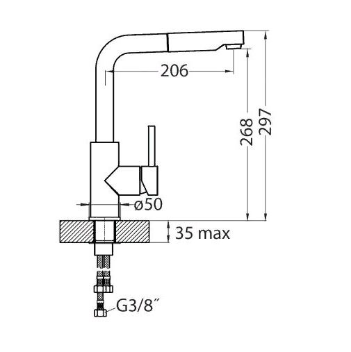 i Встроенная в кран насадка на длинном гибком шланге с металлической оплеткой. Насадки с кнопкой могут переключать обычный излив воды на душ.