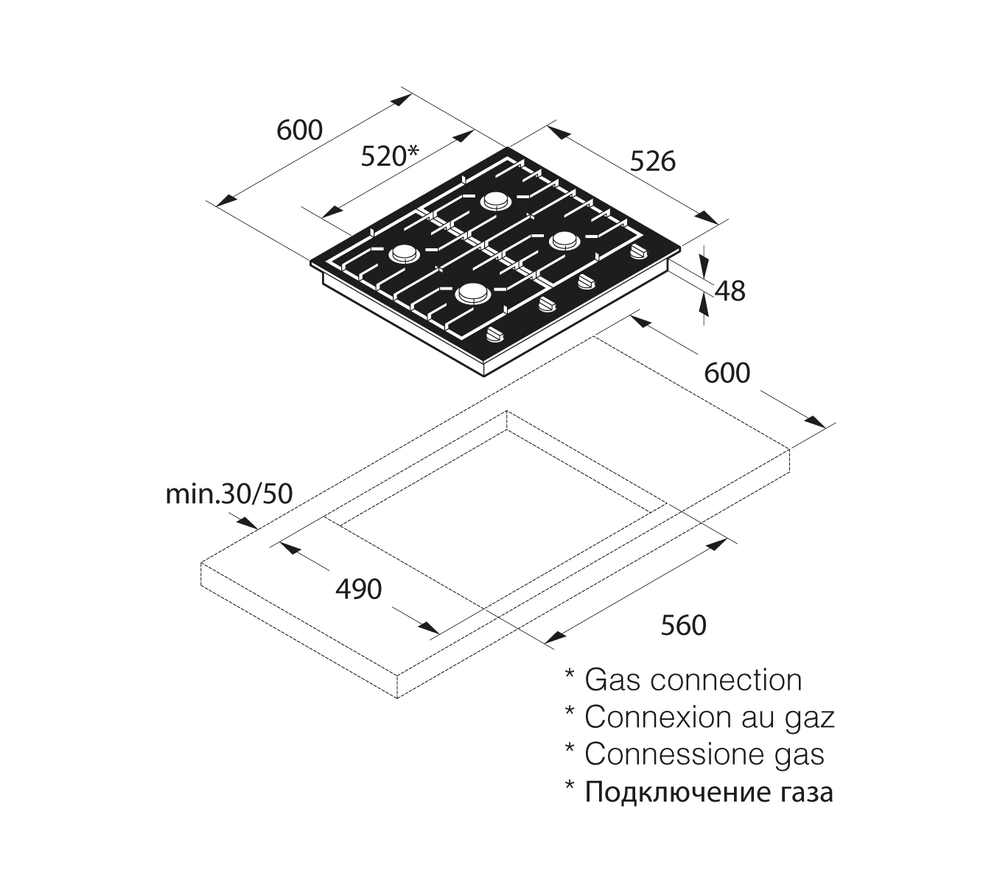 Расположение подключения газа