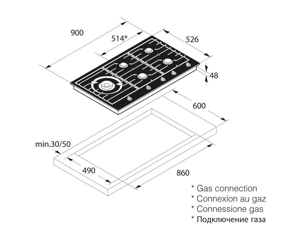 i Система безопасности в газовых плитах, варочных поверхностях и варочных центрах. Если пламя гаснет, подача газа прекращается автоматически.