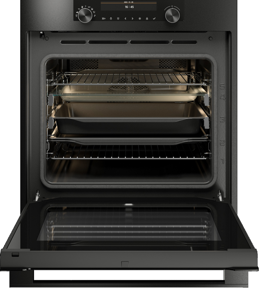 i С этой дополнительной функцией дверцу духового шкафа можно просто немного подтолкнуть и отпустить, она плавно закроется сама.