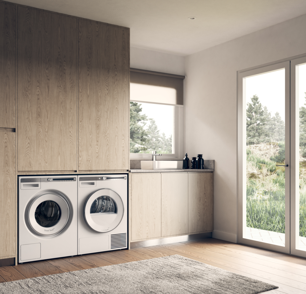 i Способ «нейтрализации» влажного воздуха после сушки. Тепловой насос считается более энергоэффективным, конденсационная сушка — бережной.