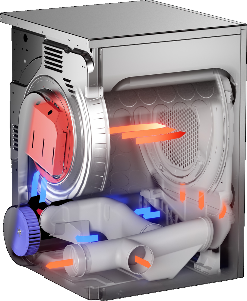 i Механизм нагрева воздуха для сушки белья. Тепловой насос считается более современным, эффективным и экономичным по сравнению с ТЭН.