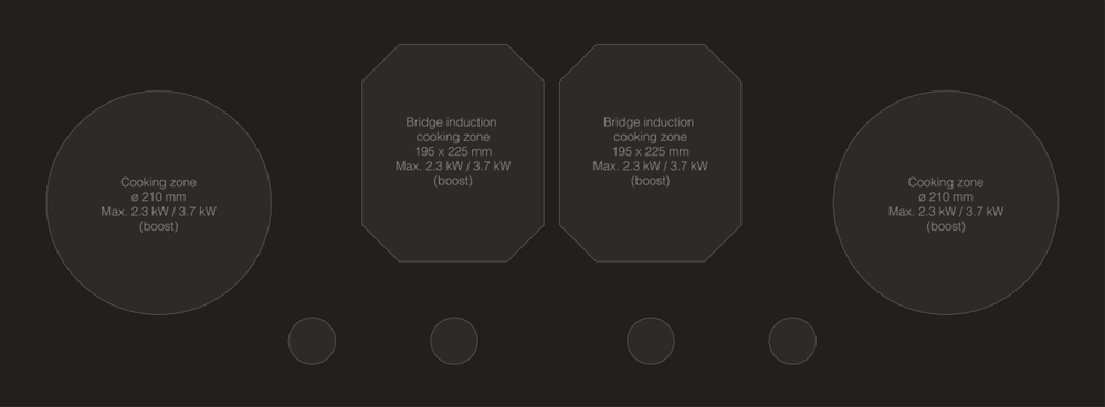 i На варочной поверхности может быть от 2 до 8 электрических конфорок с индукционным нагревом. Для них нужна специальная посуда.