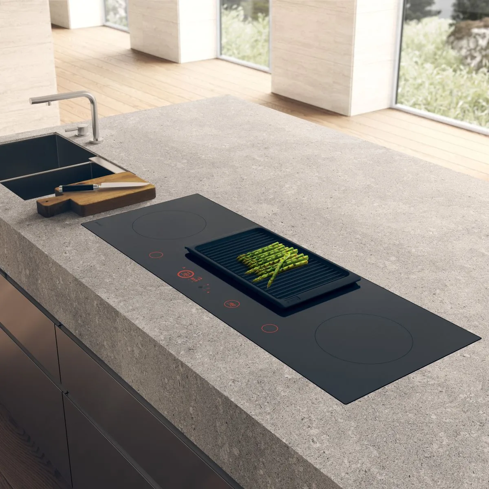 i Модели со встроенной вытяжкой подходят для компактных кухонь. Запахи, пар и дым от готовки полностью поглощаются встроенной вытяжкой.