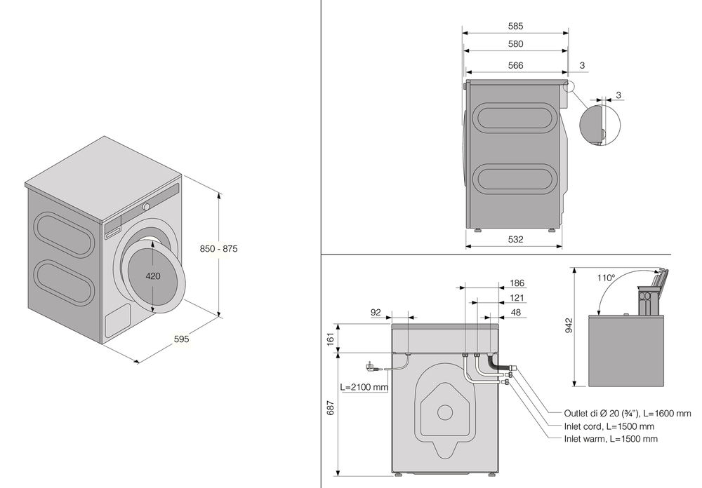 i Высота товара. Учитывайте этот показатель, чтобы модель удачно вписалась в помещение или кухонный гарнитур и была удобна в эксплуатации.