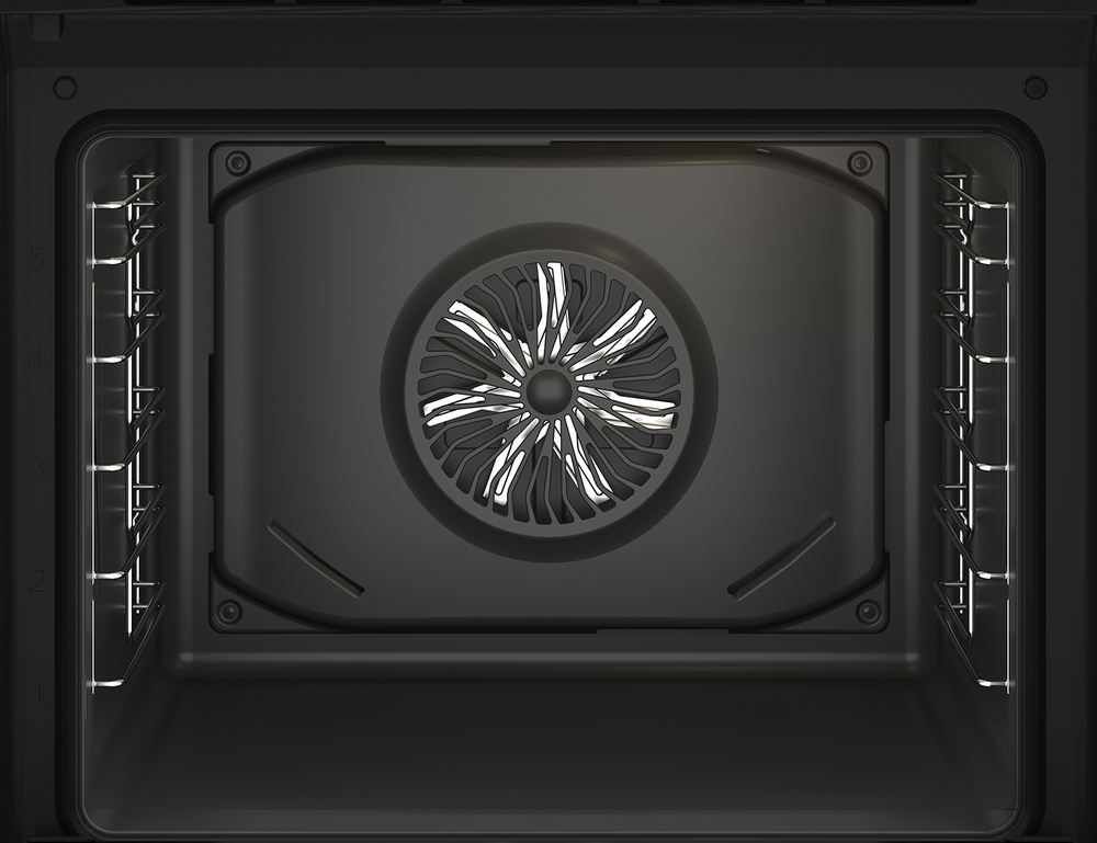 i Предполагает наличие встроенного вентилятора, который обеспечивает равномерное запекание благодаря непрерывной циркуляции горячего воздуха.