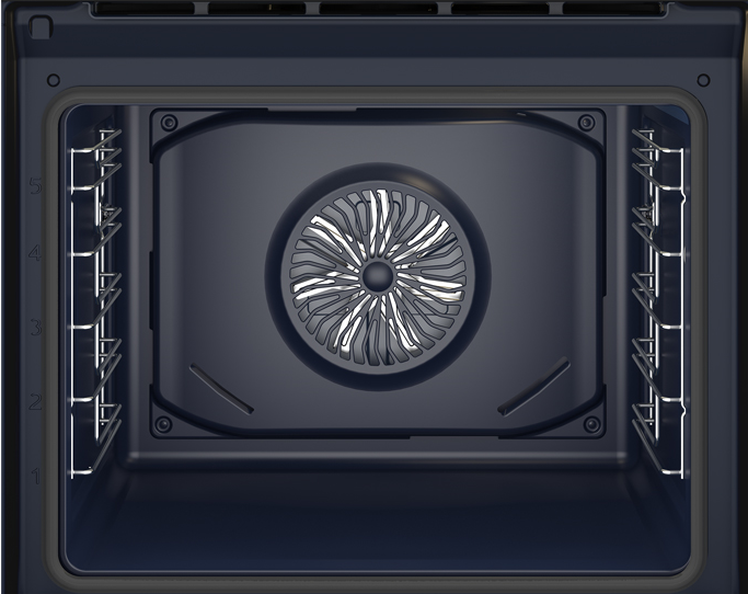i Предполагает наличие встроенного вентилятора, который обеспечивает равномерное запекание благодаря непрерывной циркуляции горячего воздуха.