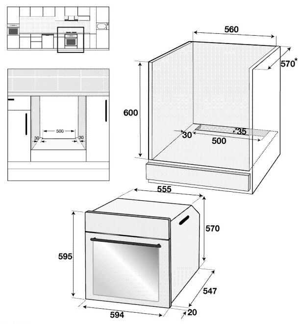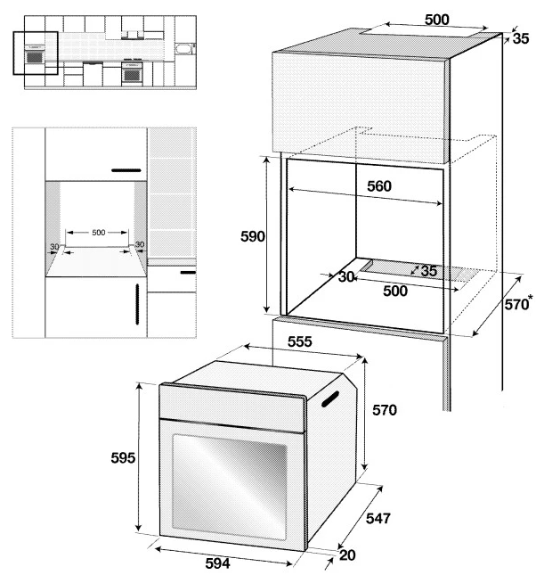 i Ширина корпуса электроприбора. Особенно важно точно знать точную допустимую ширину для встраиваемой техники.