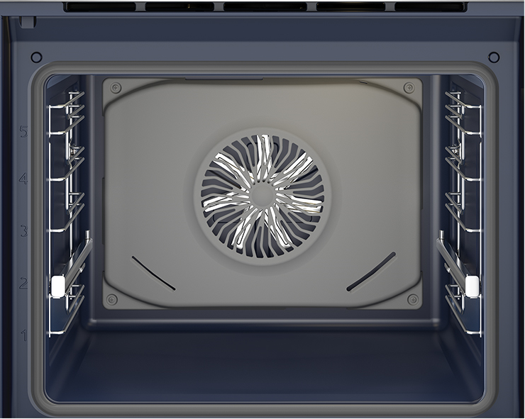 i Предполагает наличие встроенного вентилятора, который обеспечивает равномерное запекание благодаря непрерывной циркуляции горячего воздуха.