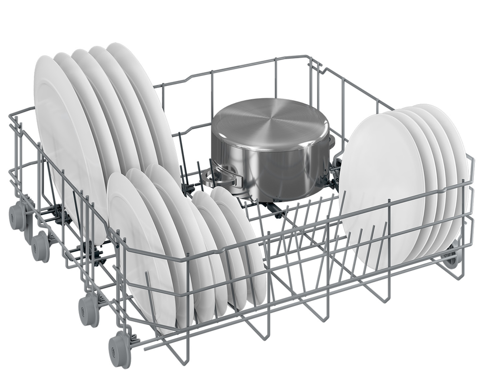 i В стандартной посудомоечной машине 3 корзины — 2 для посуды и 1 для столовых приборов. Современные модели могут иметь от 1 до 4 корзин.