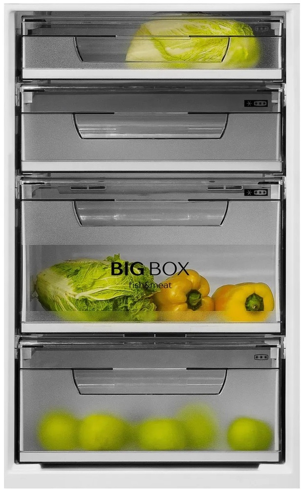 i В зоне свежести температура держится на уровне 0°С, так продукты дольше остаются свежими. Подходит для свежего мяса, рыбы, фруктов, овощей.