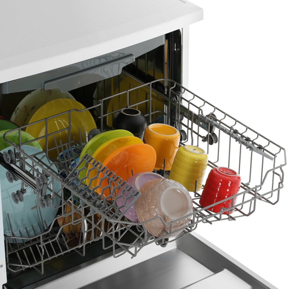 i В стандартной посудомоечной машине 3 корзины — 2 для посуды и 1 для столовых приборов. Современные модели могут иметь от 1 до 4 корзин.