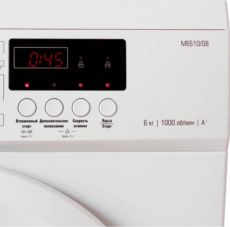 i Небольшой экран на передней панели прибора. Помогает выбирать программу, менять настройки. На дисплее выводятся сообщения об ошибке.