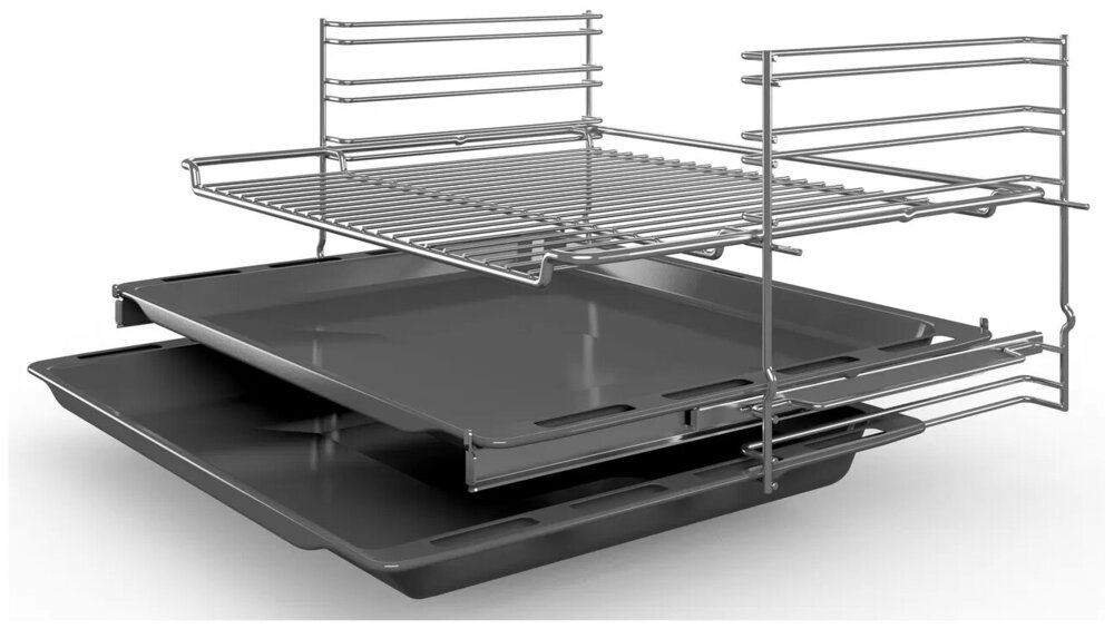i Выдвижные металлические полозья, которые легко выезжают за пределы камеры духовки вместе с противнем, не давая ему упасть.