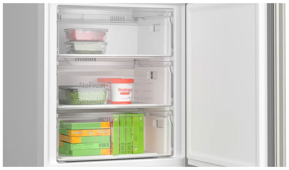 i В зоне свежести температура держится на уровне 0°С, так продукты дольше остаются свежими. Подходит для свежего мяса, рыбы, фруктов, овощей.