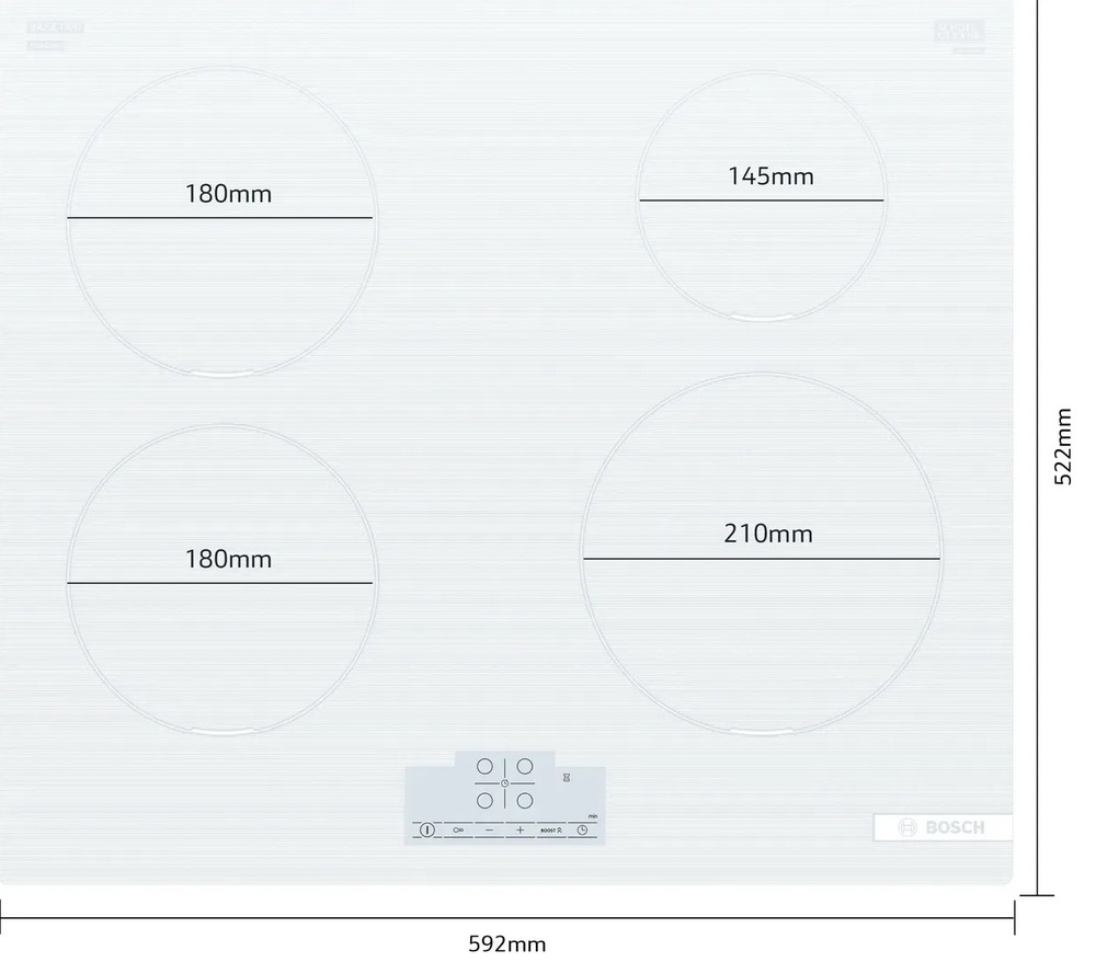 i Расположение панели управления варочной поверхностью относительно конфорок. Если панель расположена сбоку, она будет справа.