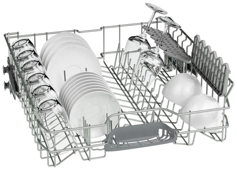 i В стандартной посудомоечной машине 3 корзины — 2 для посуды и 1 для столовых приборов. Современные модели могут иметь от 1 до 4 корзин.