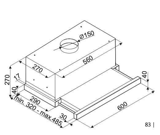 Brandt BHT2611B встраиваемая вытяжка телескопическая