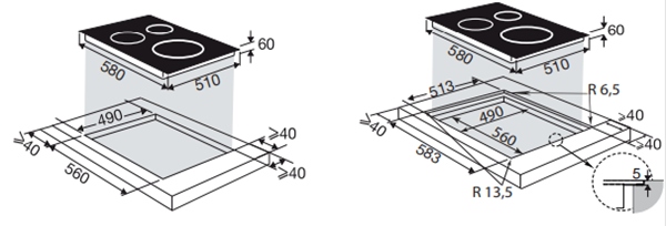 i На варочной поверхности может быть от 2 до 8 электрических конфорок с индукционным нагревом. Для них нужна специальная посуда.