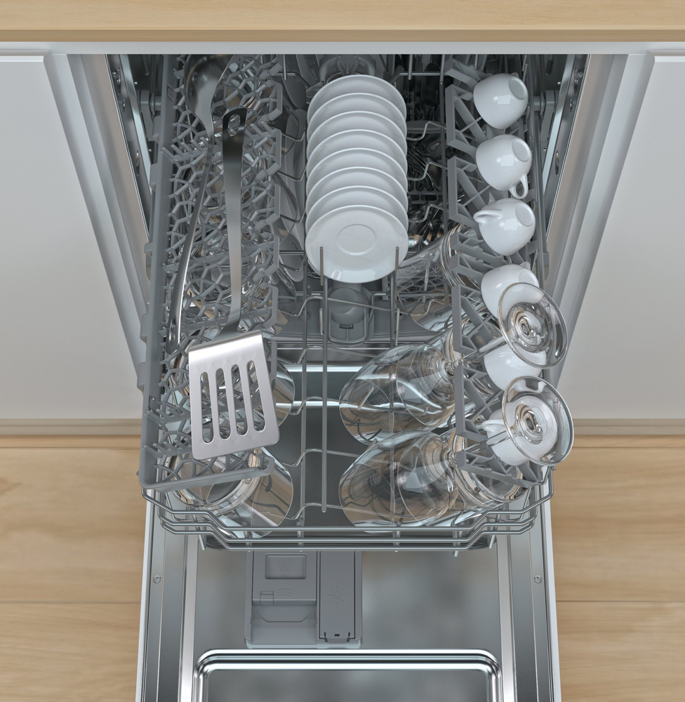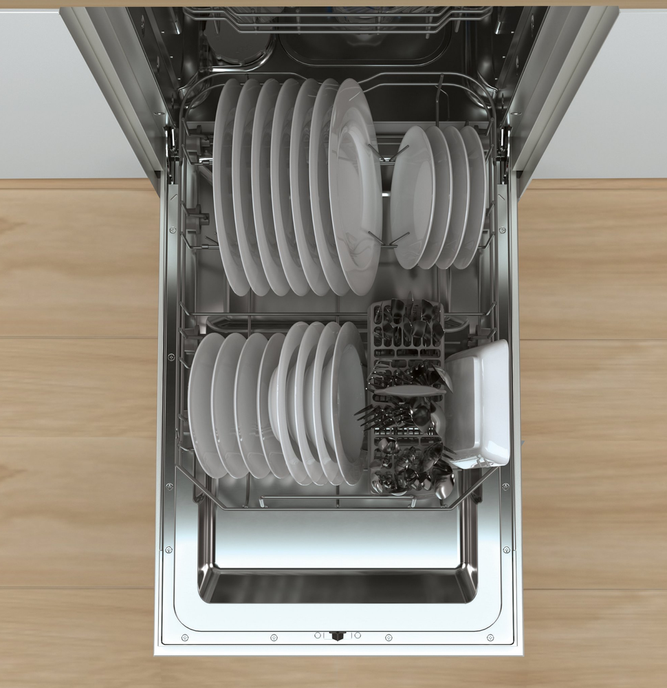 i В стандартной посудомоечной машине 3 корзины — 2 для посуды и 1 для столовых приборов. Современные модели могут иметь от 1 до 4 корзин.