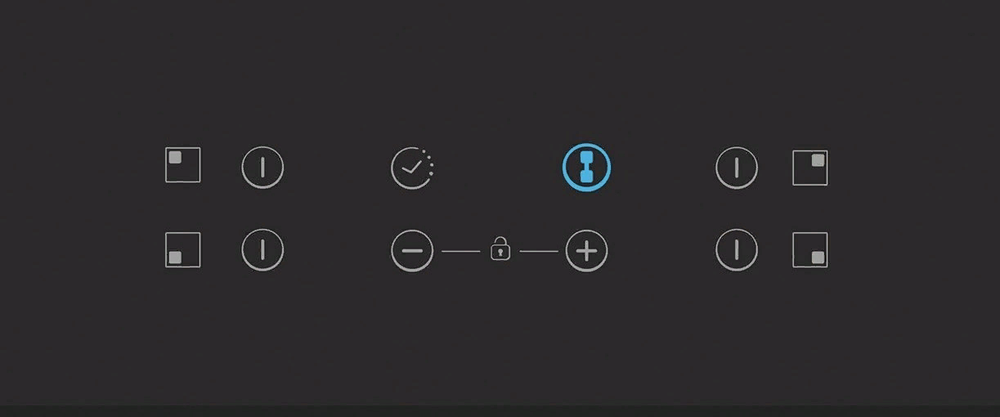 i Расположение панели управления варочной поверхностью относительно конфорок. Если панель расположена сбоку, она будет справа.