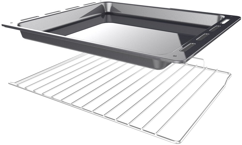 i Выдвижные металлические полозья, которые легко выезжают за пределы камеры духовки вместе с противнем, не давая ему упасть.
