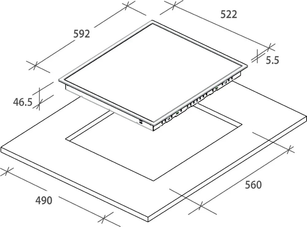 i Характер огранки фаски на внешней стороне варочной панели. Металлические рамки предотвращают забивание монтажных швов крошками и пылью.