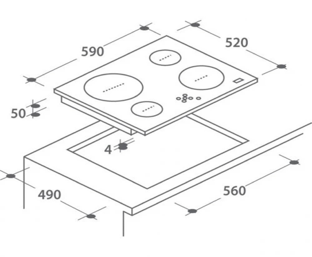 i Расположение панели управления варочной поверхностью относительно конфорок. Если панель расположена сбоку, она будет справа.