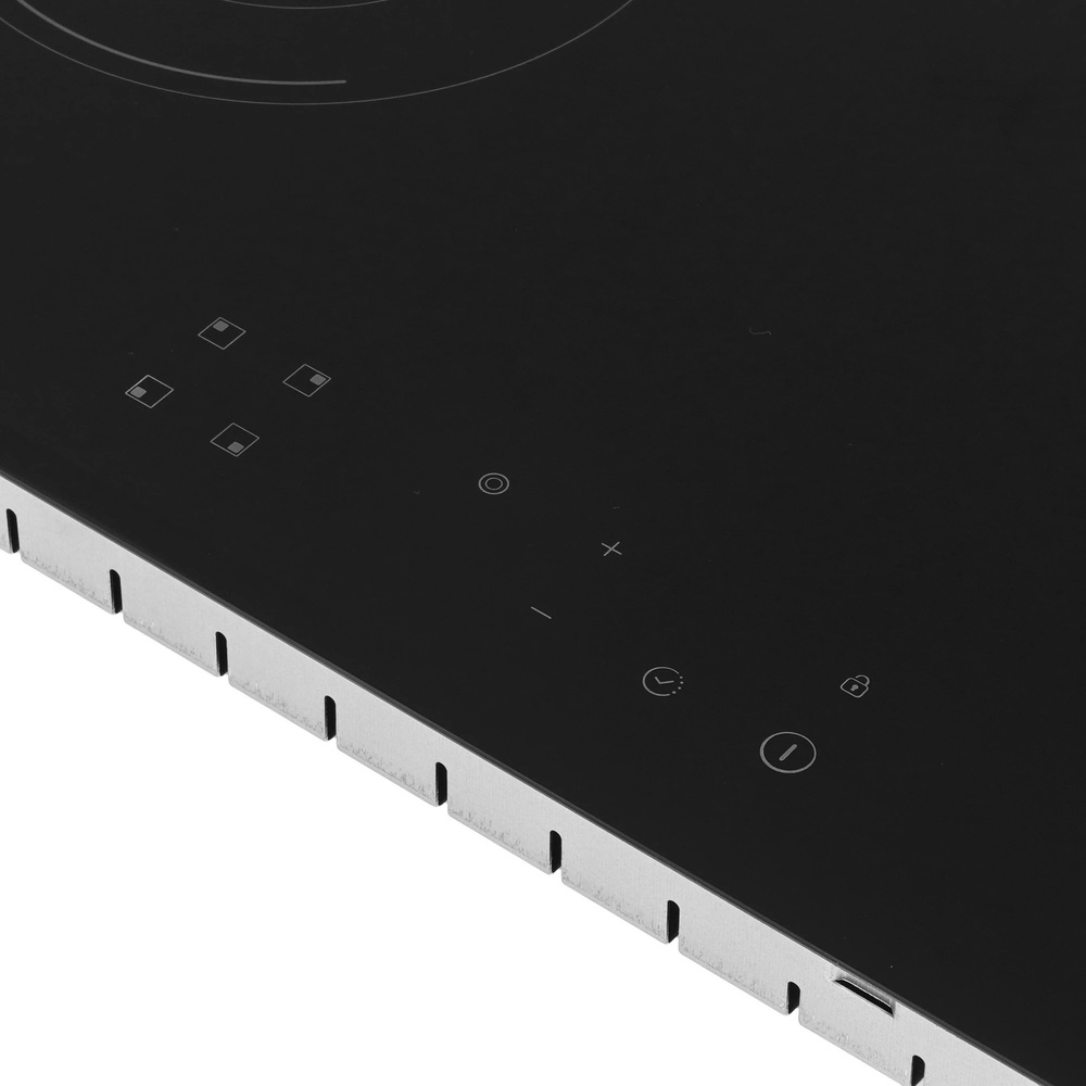 i Характер огранки фаски на внешней стороне варочной панели. Металлические рамки предотвращают забивание монтажных швов крошками и пылью.