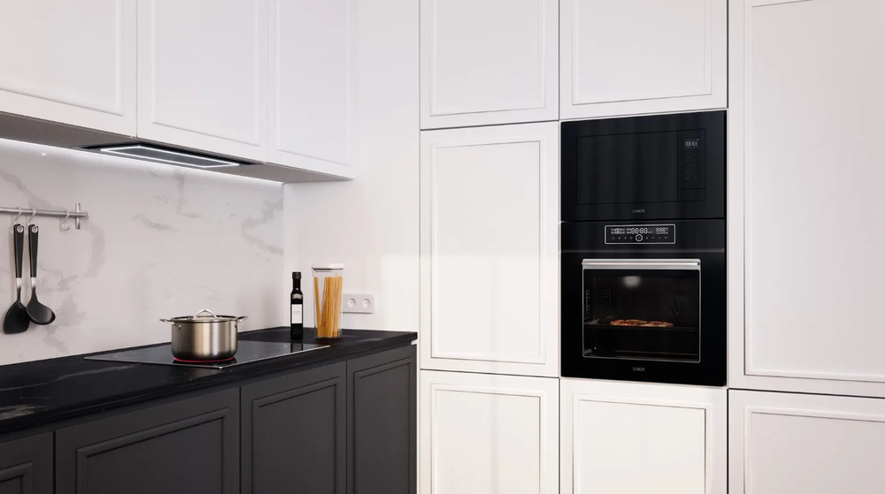 i Модели со встроенной вытяжкой подходят для компактных кухонь. Запахи, пар и дым от готовки полностью поглощаются встроенной вытяжкой.