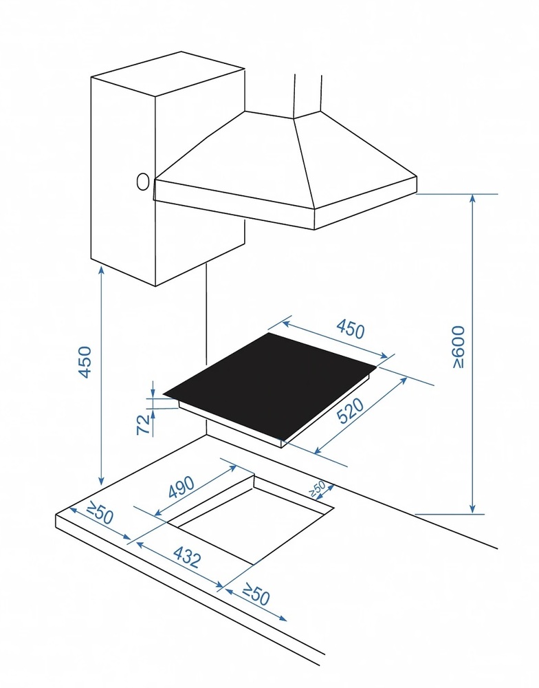 i Модели со встроенной вытяжкой подходят для компактных кухонь. Запахи, пар и дым от готовки полностью поглощаются встроенной вытяжкой.