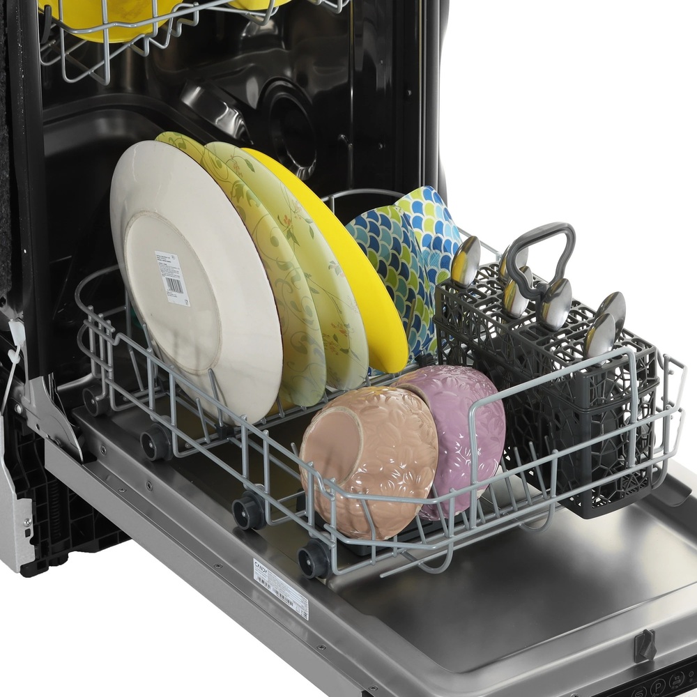 i В стандартной посудомоечной машине 3 корзины — 2 для посуды и 1 для столовых приборов. Современные модели могут иметь от 1 до 4 корзин.