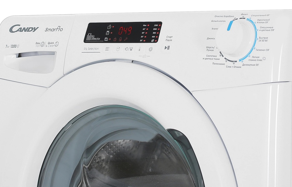 i Небольшой экран на передней панели прибора. Помогает выбирать программу, менять настройки. На дисплее выводятся сообщения об ошибке.