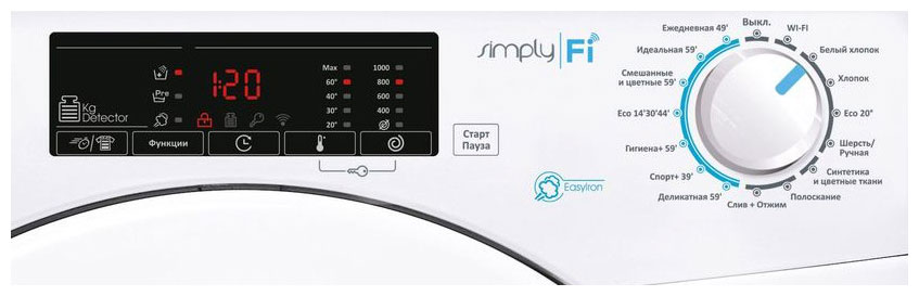 i Небольшой экран на передней панели прибора. Помогает выбирать программу, менять настройки. На дисплее выводятся сообщения об ошибке.